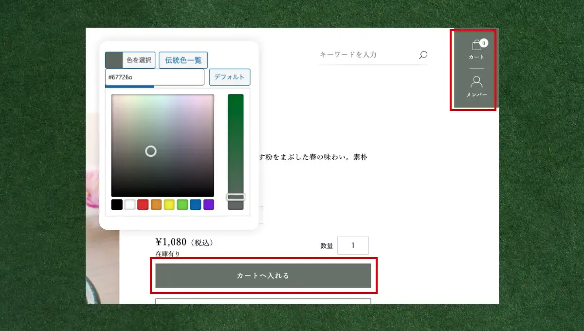 「和音」は、Welcart初の“和”をコンセプトとしたデザインテーマです。Duo の「分割レイアウト」「テーマ設定画面」「並び替え」「商品タグ」等の機能を継承しつつ、「縦書きレイアウト」「伝統色パレット」など、日本らしい余白や高級感を演出できる機能を新たに搭載しています。