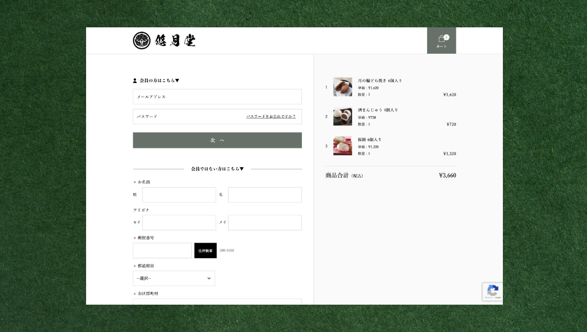 ※カートページに進んだ後で、お客様情報入力画面から会員登録していただくことも可能です。