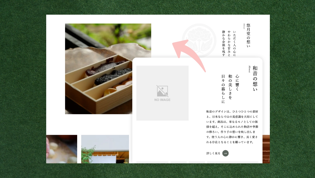 ページスクロール時にふわりと表示されるフェードインなどのアニメーションを、ブロック単位で自由に設定できます。サイト全体に統一感をもたらし、商品の魅力をより一層引き立てます。