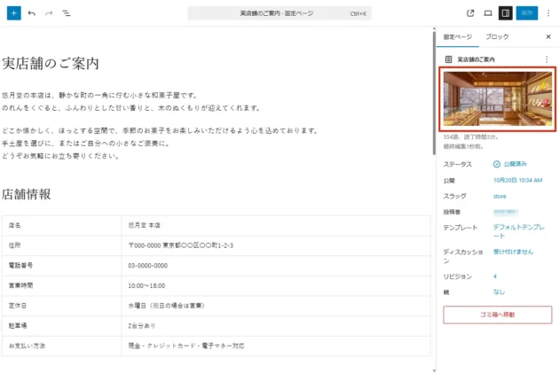 アイキャッチ画像を設定すると固定ページの詳細に表示されます。