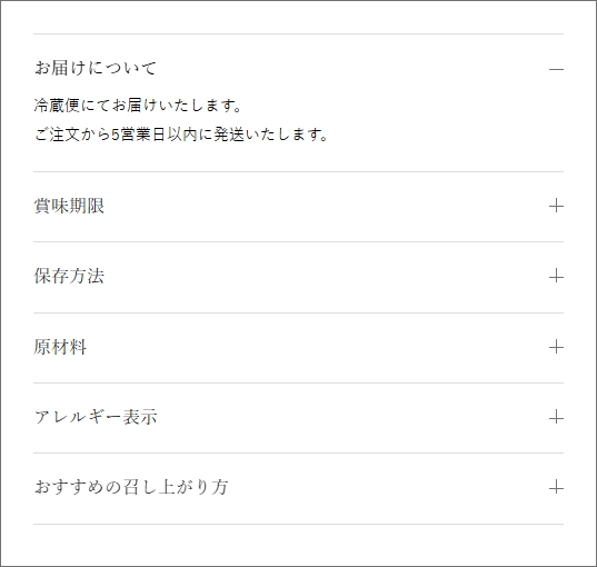 カートボタンの下に商品詳細本文に入力された内容が表示されます。